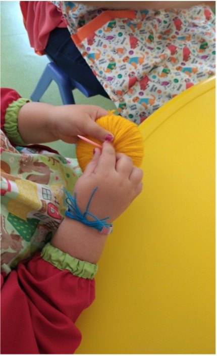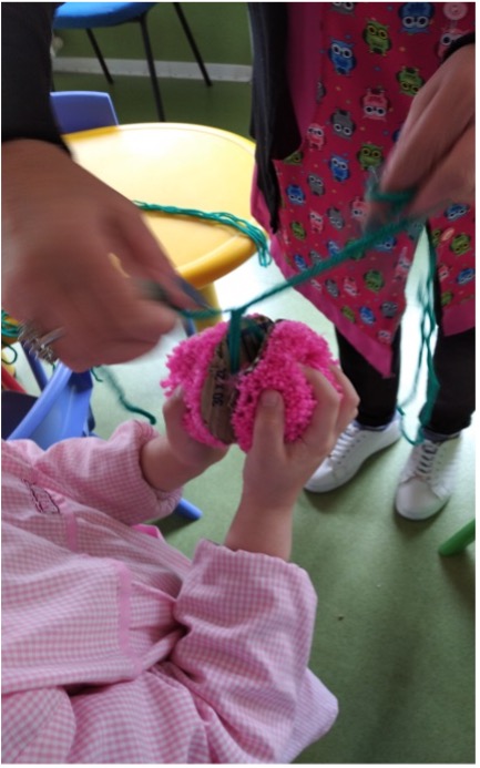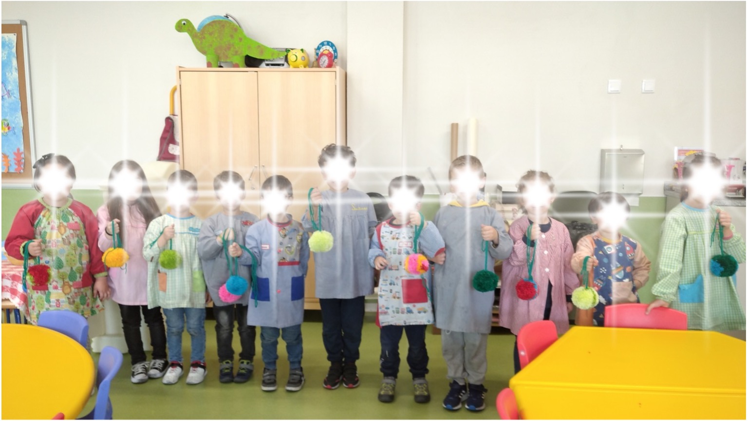 Os pompons foram confecionados nas salas pelas crianças, pelos Assistentes Operacionais e ainda pelas famílias de algumas crianças.